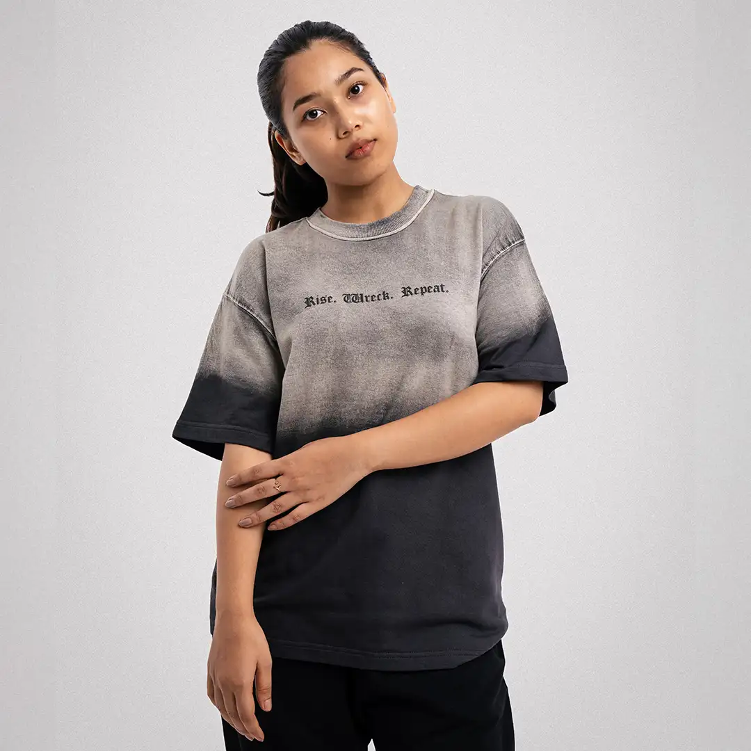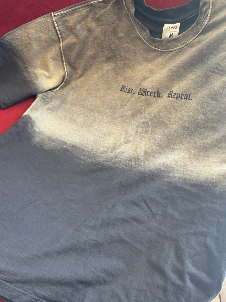“Rise. Wreck. Repeat.” Tee – Gradient Acid Wash Drop