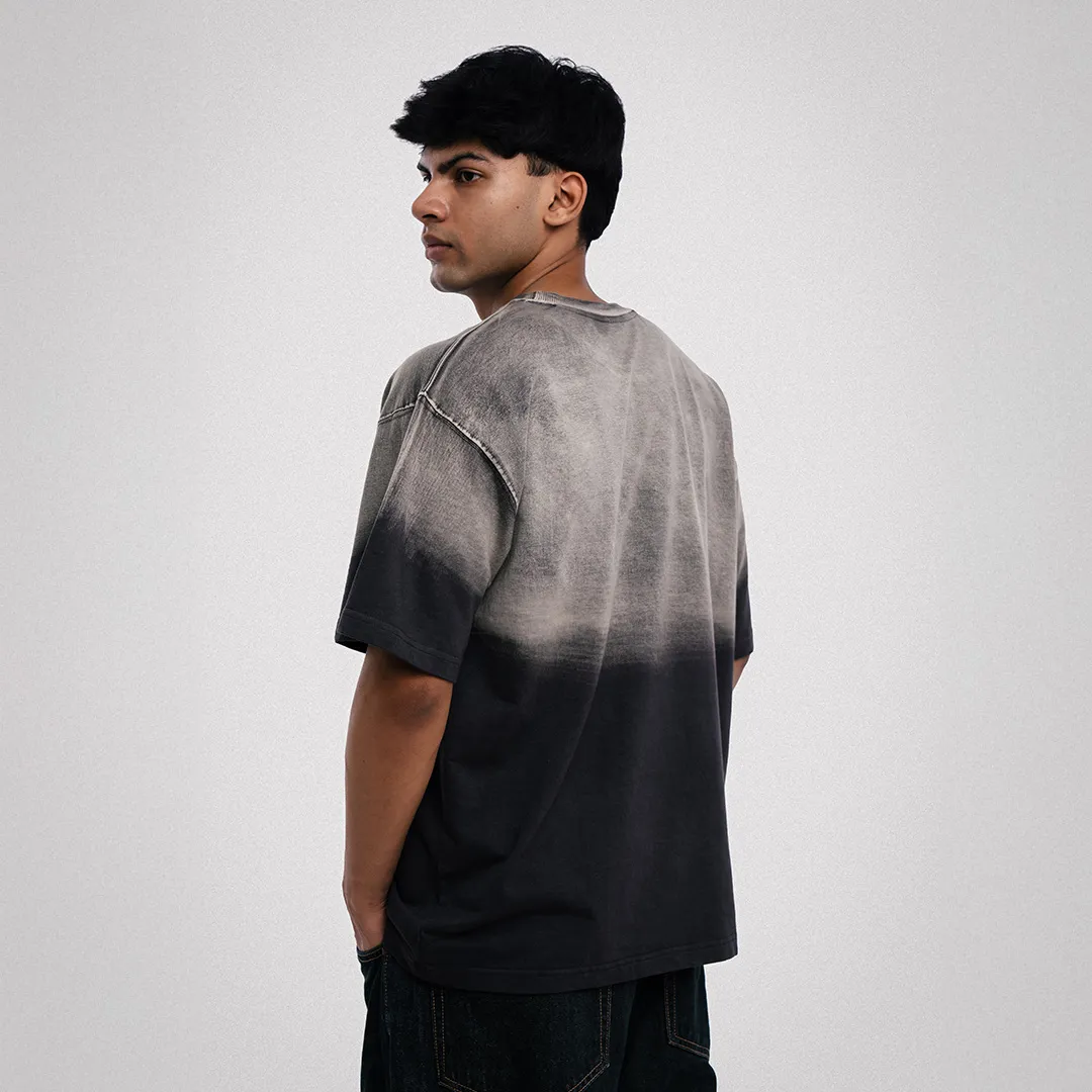 This tee hits with raw energy and a bold fade. Made with a dip-dye acid wash, it blends faded beige into deep washed black, giving it a one-of-a-kind gradient look with that worn-in feel.